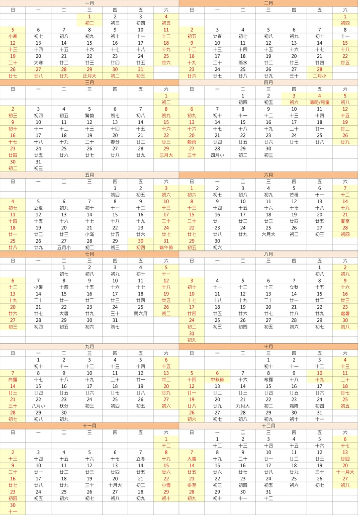 2025(民國114年)行事曆
